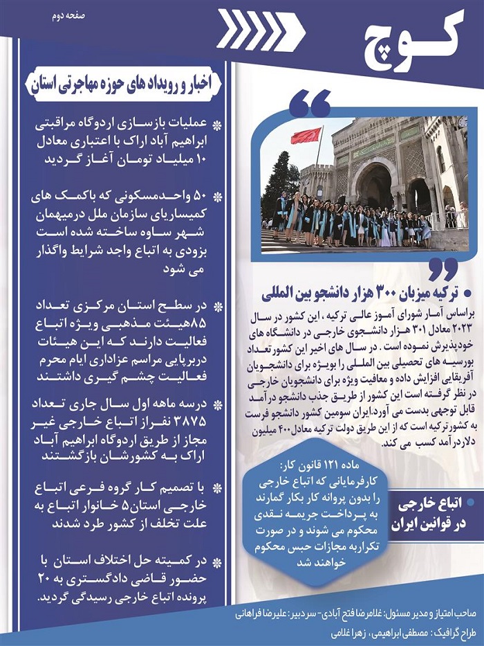 نشریه " کوچ "توسط دفتر امور اتباع و مهاجرین خارجی استان مرکزی منتشر گردید.