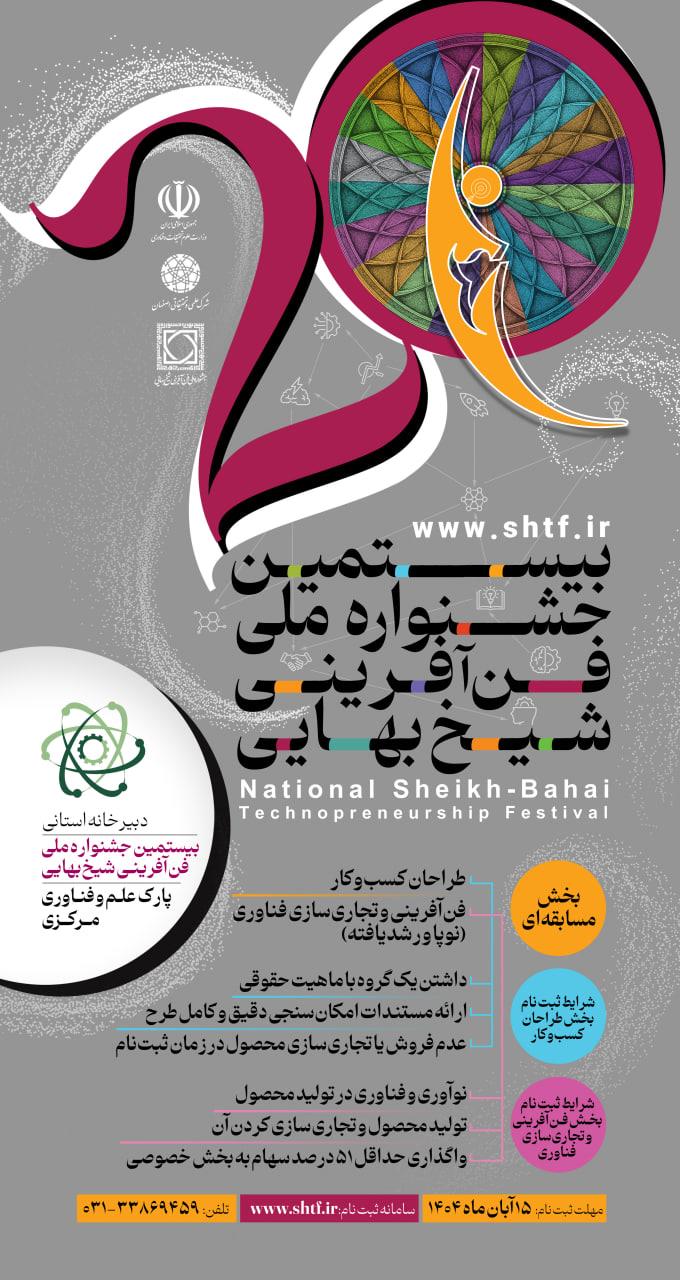 به اطلاع می رساند بیستمین دوره جشنواره ملی فن آفرینی شیخ بهایی که از قدیمی ترین و معتبرترین رویداد فناوری و نوآوری کشور می باشد در سال ۱۴۰۴ در دست برگزاری است و پارک علم و فناوری استان مرکزی به عنوان دبیرخانه استانی این جشنواره، مسئولیت هماهنگی و پیگیری برگزاری آن در سطح استان را بر عهده دارد.