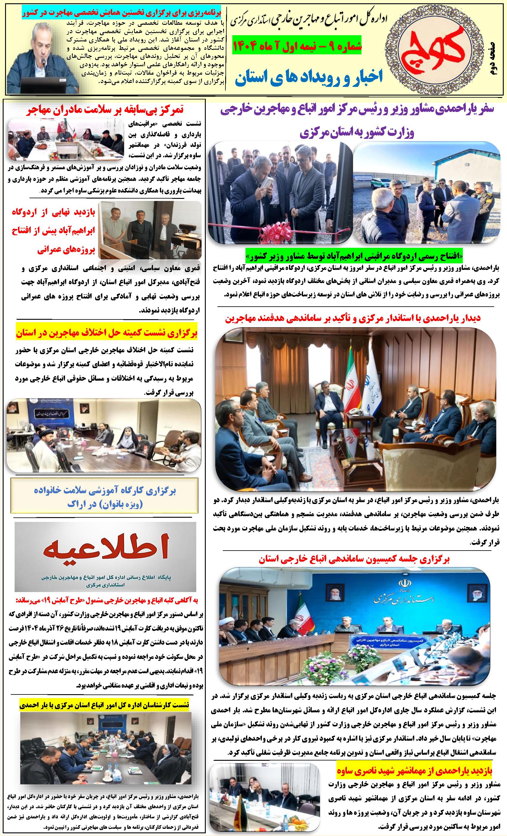 اخبار و رویدادهای حوزه مهاجرت استان مرکزی