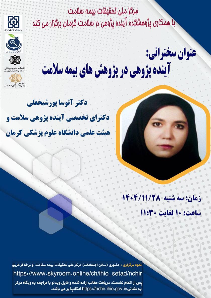 نشست علمی - تخصصی آینده پژوهی در پژوهش های بیمه سلامت ۲۶ بهمن ۱۴۰۴ | ۱۲:۱۹ کد : ۵۸۰۱۲ اطلاعیه ارسال به دیگران نام شما ایمیل شما ایمیل دریافتکننده ارسال انصراف تعداد بازدید:۳۳۸ نشست علمی - تخصصی آینده پژوهی در پژوهش های بیمه سلامت